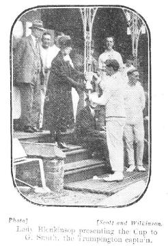 However, Trumpington met Ainsworth in the third round of the Cambs, Junior Cup. The match was played at Corpus Christi ground. J. Kefford made a splendid innings – still scoring when the last wicket fell. His 45 included several boundaries. The game towards the close proved quite exciting but Ainsworth won with 20 runs in hand.
